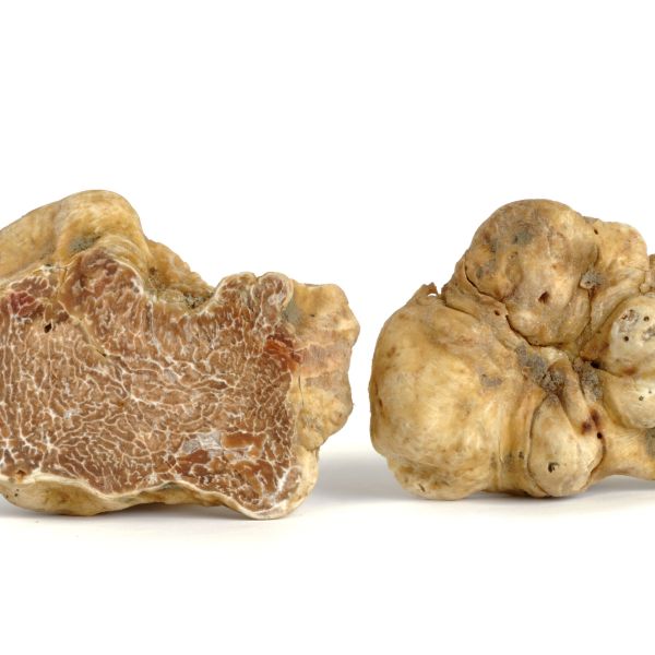 The White Truffle features a smooth, golden exterior that encases a pale cream to ochre-yellow flesh, marbled with fine white veins. This delicate interior is where the truffle holds its powerful aroma and complex flavor.